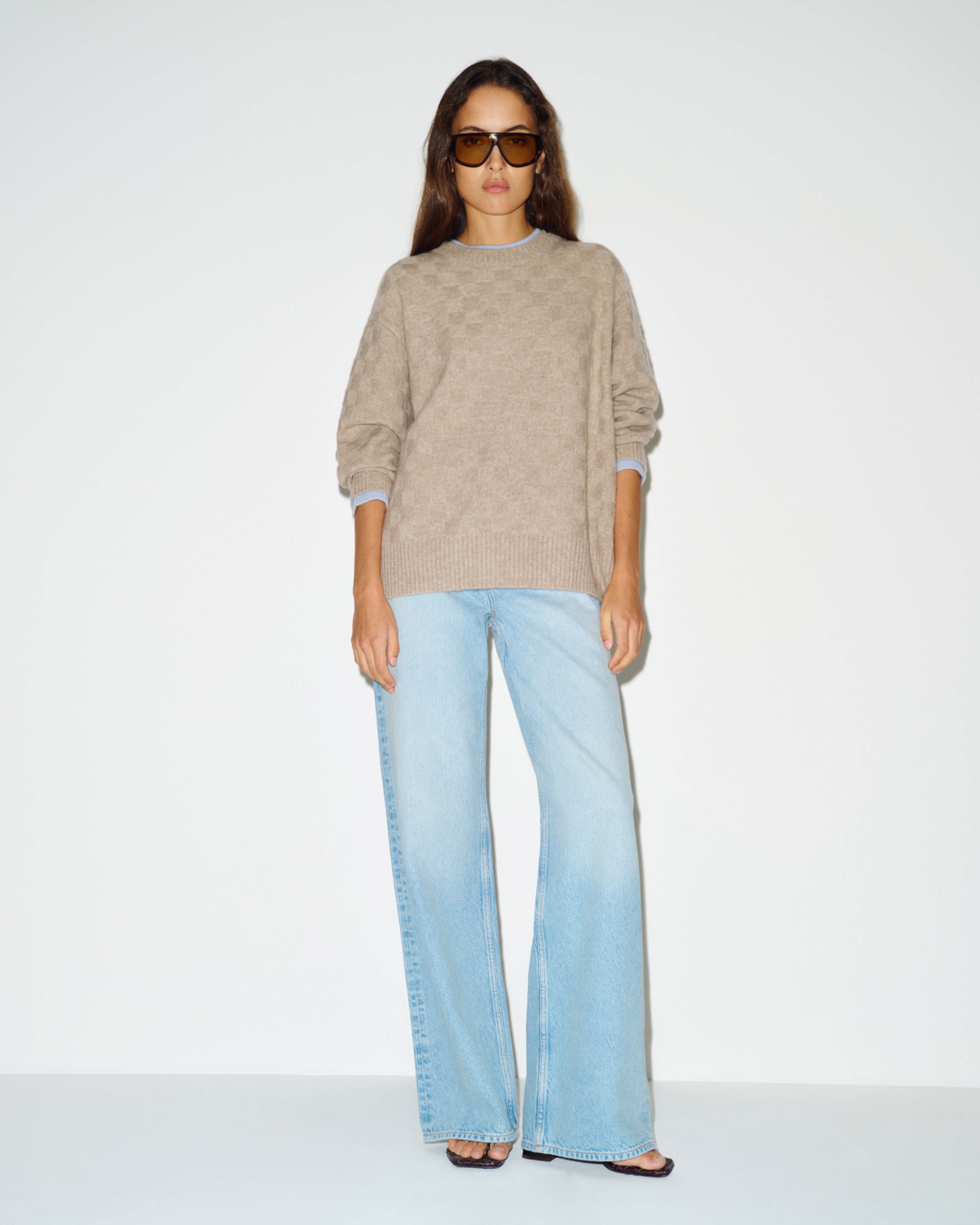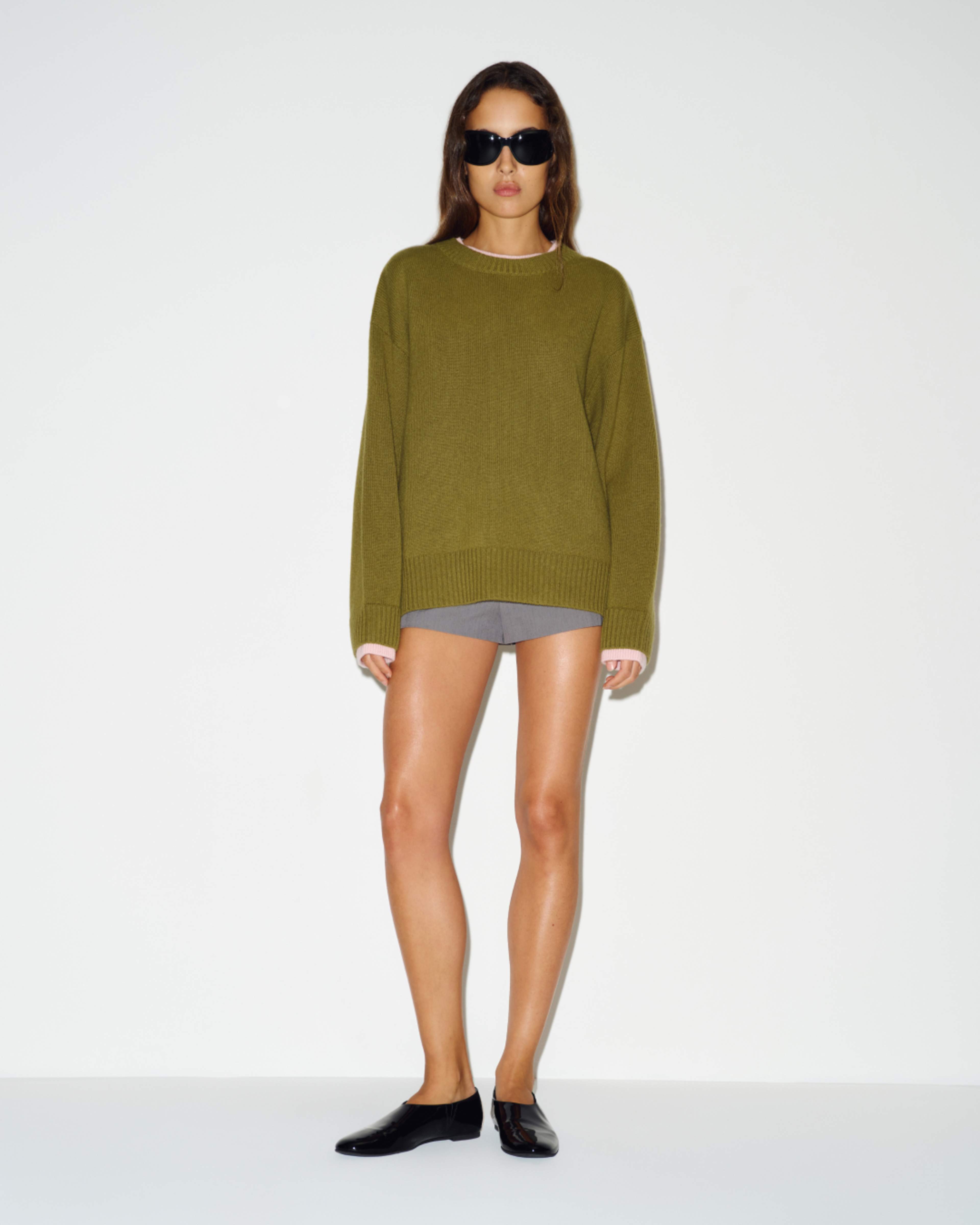 Turns out, she's good at that, too. The Tess Cashmere Sweater has a perfect oversized fit, classic crew neckline, and contrast-color ribbing at the cuffs and neckline. Available in three exclusive colorways, all made responsibly with 95% recycled cashmere.
